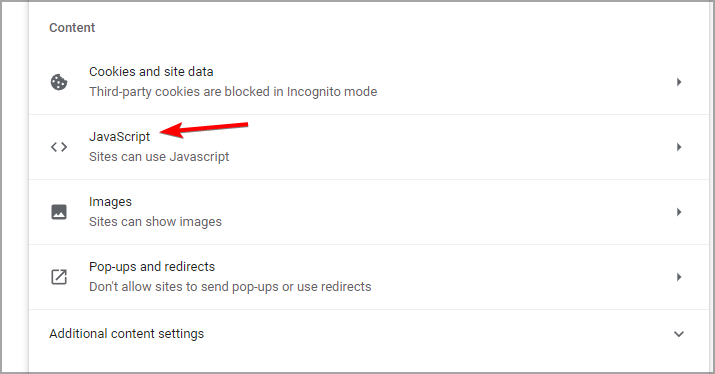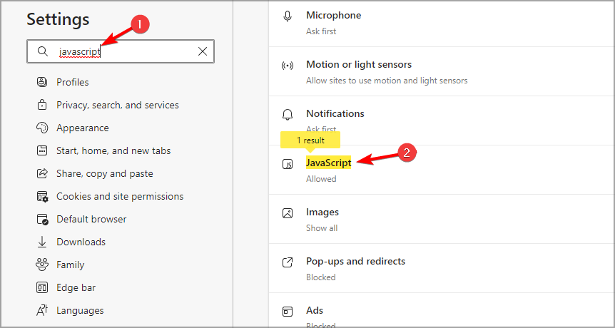 Search for Javascript. - After that, go to Site settings, then select Javascript.