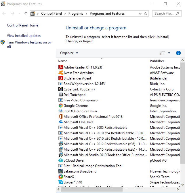 - Click View installed updates to open the list of updates.