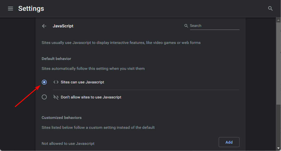 - Make sure to check the radio button next to Sites can use JavaScript. That’s it! Note that this solution also works in case images are not loading in Chrome on Mac.