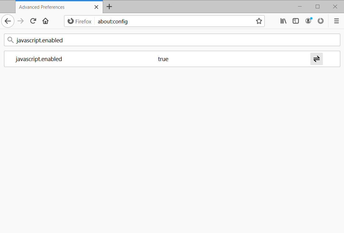 - Type javascript.enabled in the search bar at the top of the about:config page.