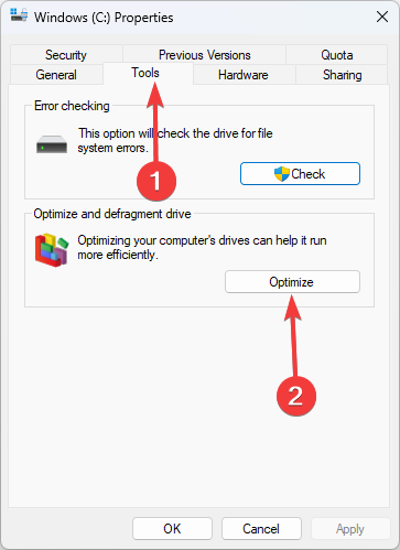 - Go to the Tools tab, and click Optimize.
